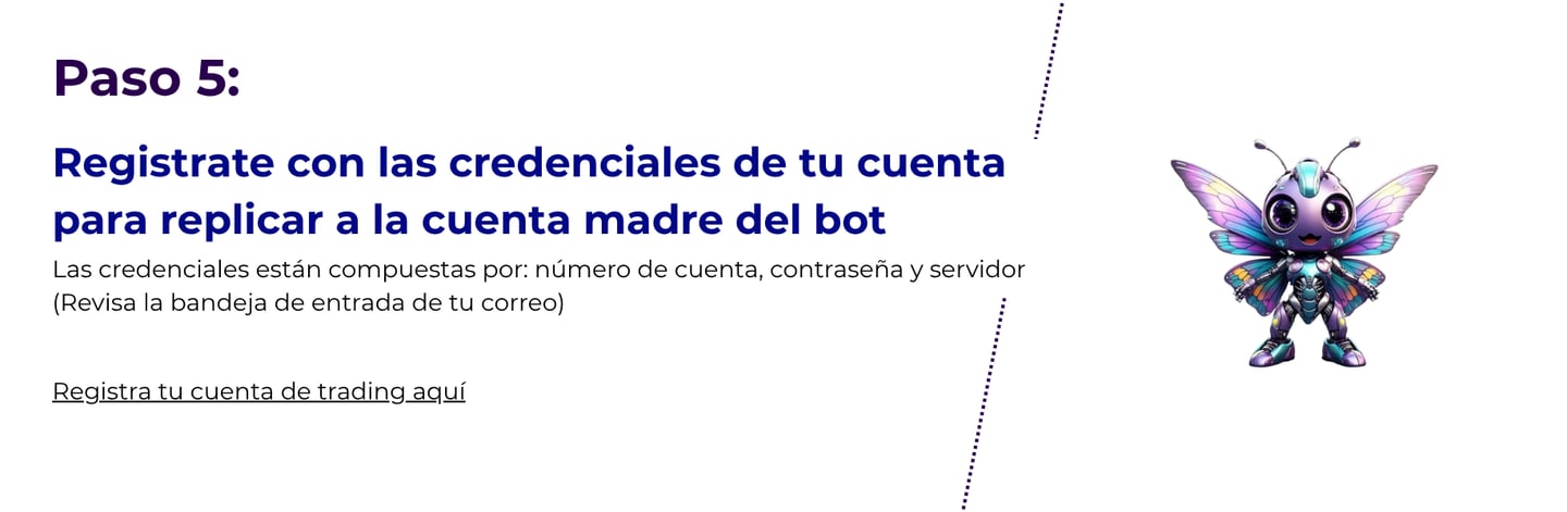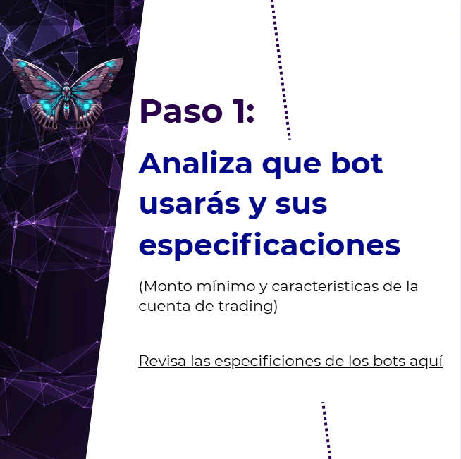 Toda la información proporcionada en este sitio no sirve en modo alguno como recomendación específica de inversión, análisis de oportunidades de inversión o recomendación general similar en relación con el trading de instrumentos financieros. BOTerfly sólo ofrece servicios y productos relacionados con EAs. La información contenida en este sitio no está dirigida a residentes en ningún país o jurisdicción en los que dicha distribución o utilización sea contraria a las leyes o normativas locales. La marca BOTerfly no actúa como brokers y no acepta depósitos.